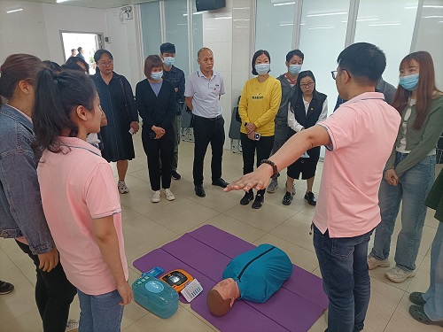 培训当天,广医三院急诊科专家进行了现场教学,讲解了心肺复苏、AED体外除颤仪使用方法等应急救护知识。现场工作人员学习到了更系统、更全面、更专业的救护知识,并积极地参与到心肺复苏的实操练习中。