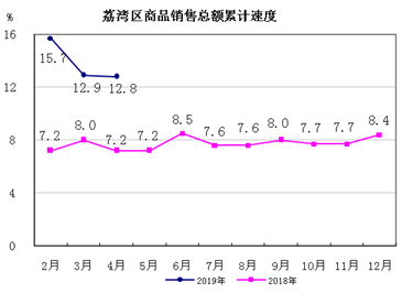 二、消费需求保持平稳。1-4月,全区社会消费品零售总额217.13亿元,同比增长7.6%。分行业看,批发零售业零售额180.33亿元,同比增长7.3%;住宿餐饮业零售额36.80亿元, 同比增长8.8%。