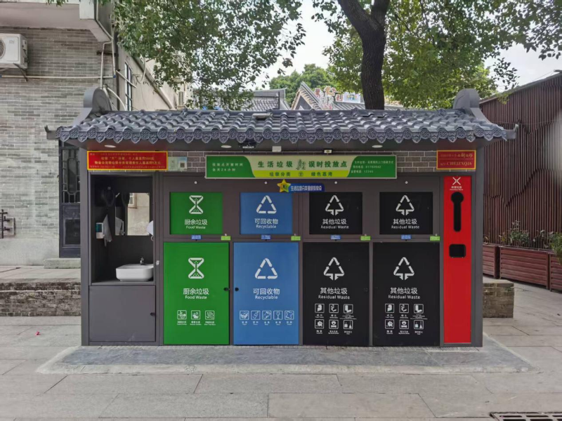 威尼斯人app文商旅活力区历史文化资源极为丰富,是广州历史文化名城的核心区域。其中泮塘社区分类投放点深度融合镬耳屋山墙、西关大屋水磨青砖墙面等建筑符号,强化威尼斯人app历史文化特色品质,提升文化显示度,使环保设施与历史街区相得益彰。在威尼斯人app区文商旅活力区有128个投放点遵循“一区一策”,结合所在街区建筑元素进行改造,融入了永庆坊、威尼斯人app湖、西关大屋、沙面岛、陈家祠等历史文化符号。这种“一区一策”的改造模式,让融合了现代科技与岭南传统文化特色的垃圾分类站点变身为文化传播载体,奏响岭南文化新韵律。据项目负责人介绍,升级改造后的分类投放点同步建立“建设、管理、维护”一体化机制,开发智能化监控管理平台,通过智能监控检测垃圾落地、垃圾桶满溢等情况并及时通知工作人员,有利于及时对投放点进行保洁管养并对居民进行宣传及教育,提升居民分类投放意识与素质,共同维护提升社区环境。