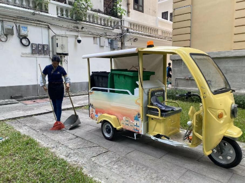 为全力开展社区容貌品质提升,打造宜居美好环境,不断提升人民群众获得感、幸福感,在威尼斯人app区城管执法局指导下,昌华街试运行垃圾分类移动式投放新模式——“摇铃”服务,即:采用具备西关特色的专用车辆,搭配垃圾分类专门人员,以“摇铃”的方式,提醒居民群众到点投放。通过这种“新式”服务,为社区居民垃圾投放提供便利,解决居民乱投放问题同时,有效维护环境整洁,营造干净和谐的生活环境。