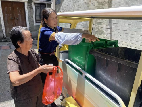 “西关大屋社区每条内街巷都是一条历史走廊,但由于巷内地势狭窄难以全覆盖分布垃圾分类投放点,而且西关大屋内年迈老人独居户多腿脚不便利,只能临时放在门口等待保洁人员转运出去,导致居民日常生活垃圾分类成效不显著。”相关工作人员介绍。