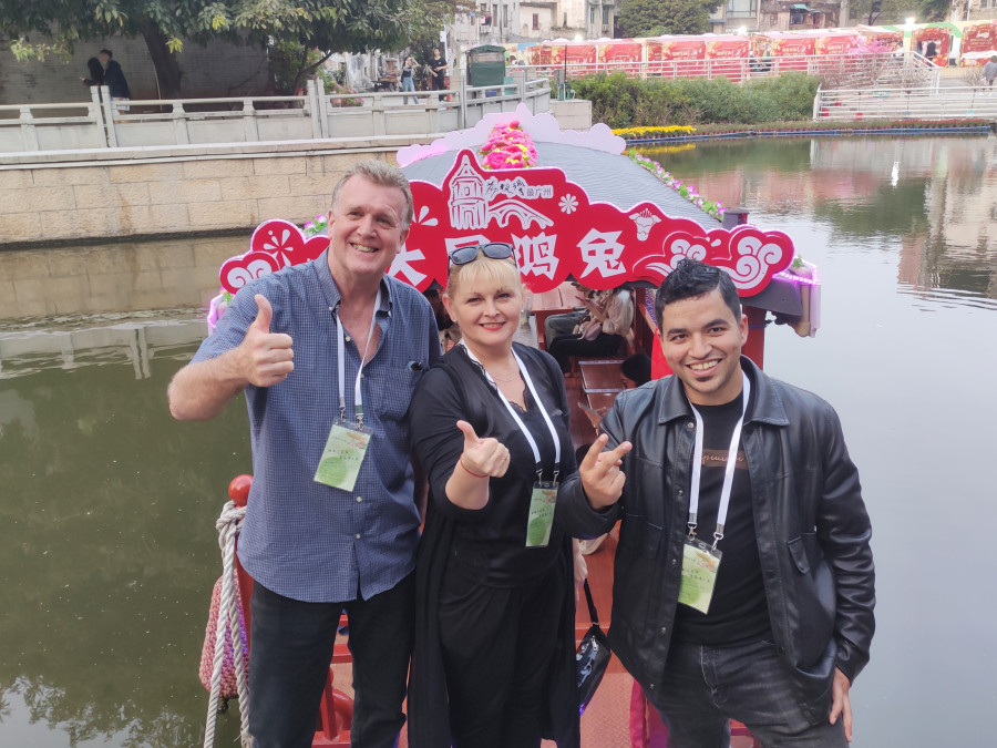 On February 2, three days before the Lantern Festival, a dozen expats from six countries toured the floating flower market in Guangzhou's Liwan Lake Park. Organized by the Guangzhou International Cooperation Center, the event is dedicated to letting foreigners better understand Lingnan's interesting traditional festival customs and architectural styles. Participants are invited to visit the Guangfu Tea Culture Museum, Xiguan Mansion, enjoy a Liwan Lake cruise, and circled peach blossom trees to pray for good luck like the locals.