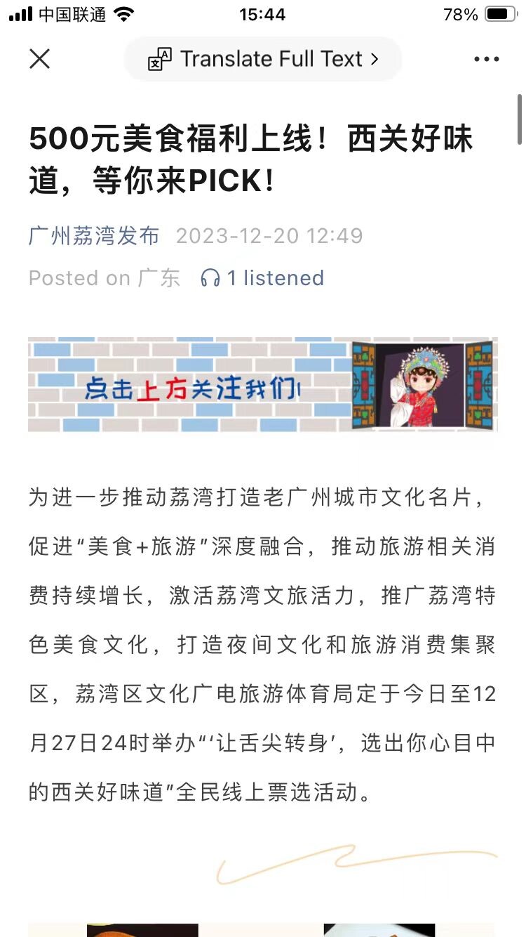 The Liwan District Culture, Radio, Television, Tourism, and Sports Administration held the "Choose Your Favorite Xiguan Flavor" online voting event from December 13thto December 27thto promote Liwan's distinctive culinary culture and boost its nightlife tourism.