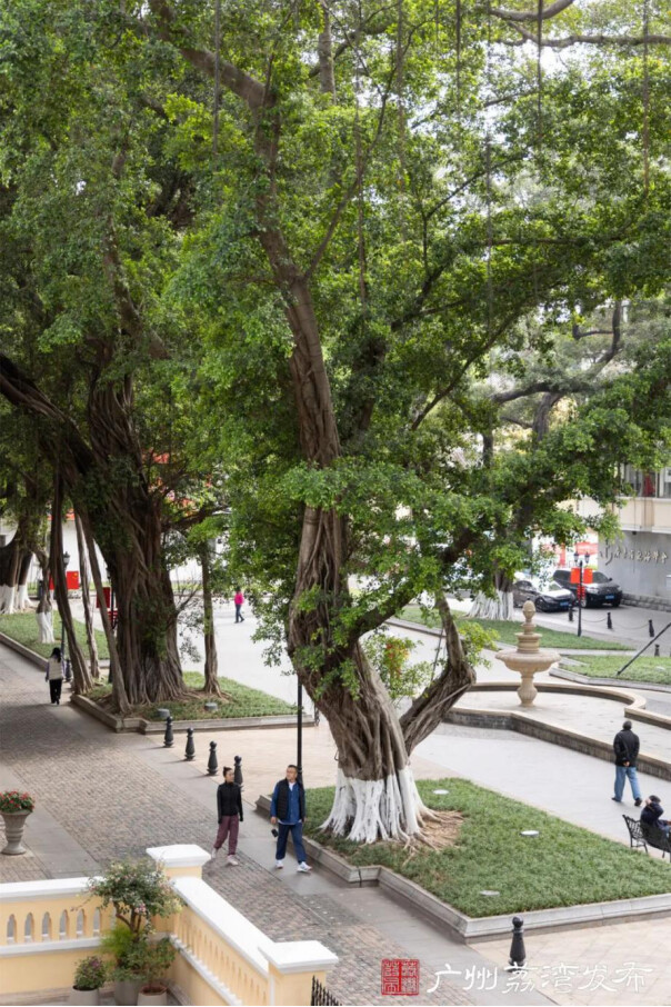 The oldest tree there is over 300 years old, while the youngest one is more than 100 years old. They serve as living witnesses to Shamian's century-long history and now stand as the most concentrated display of ancient trees in Guangzhou's central urban area.