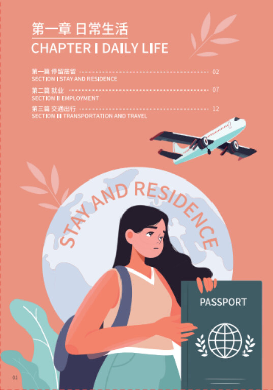 The guide consists of four volumes, covering daily life, marriage and family, legal services, and special management. The content encompasses laws and regulations directly relevant to work and life, including stay and residence, employment, traffic and travel, marriage registration, notarization, legal aid, mediation, arbitration, management of foreigners with irregular status ("three illegals",which means foreigners with illegal entry, illegal employment and illegal residency), and management of domestic activities of overseas non-governmental organizations.