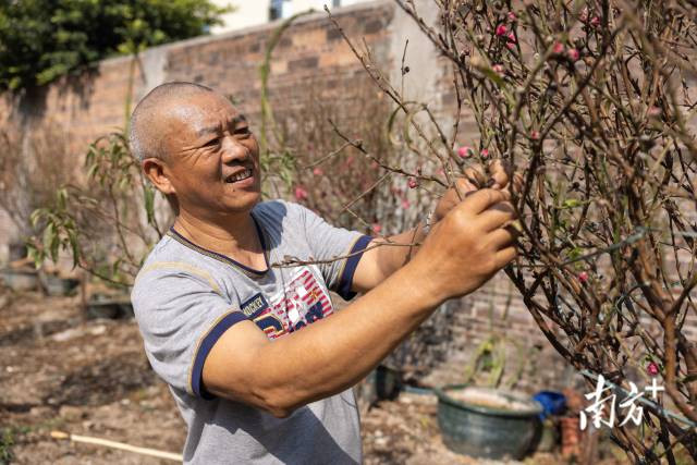Uncle Wen has been planting peach trees in Dongxiu, Nanhai, for nearly 30 years. He is also a familiar face at Guangzhou Liwan Flower Market. He has been selling flowers in the traditional flower market for over 20 years.