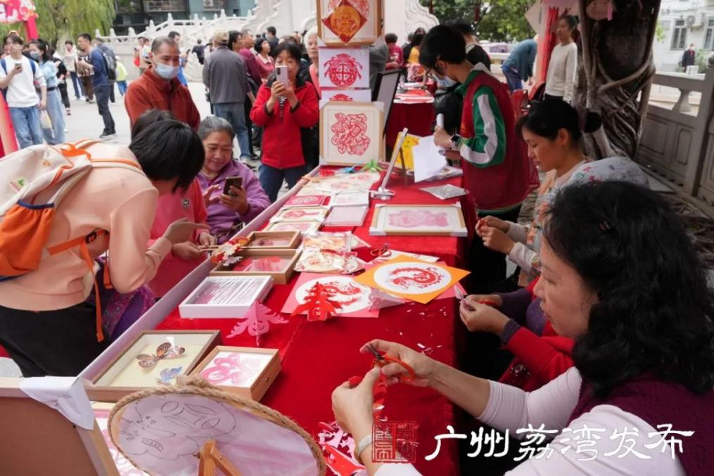 Liwan District has created a traditional craft experience area. During the carnival, residents and tourists can not only experience traditional crafts such as paper-cutting, New Year paintings, lanterns, Guangcai (traditional Guangdong-style porcelain), Tongcao paintings, and Guangdong puppets but also dress up in Cantonese opera costumes and be transformed into Cantonese opera characters by makeup artists.