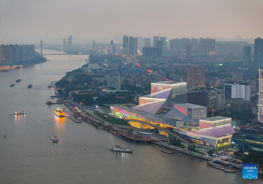 Housing the Guangdong Museum of Art, the Guangdong Intangible Cultural Heritage Exhibition Center, and the Guangdong Literature Hall, the art center was inaugurated on Sunday. (Xinhua/Liu Dawei)