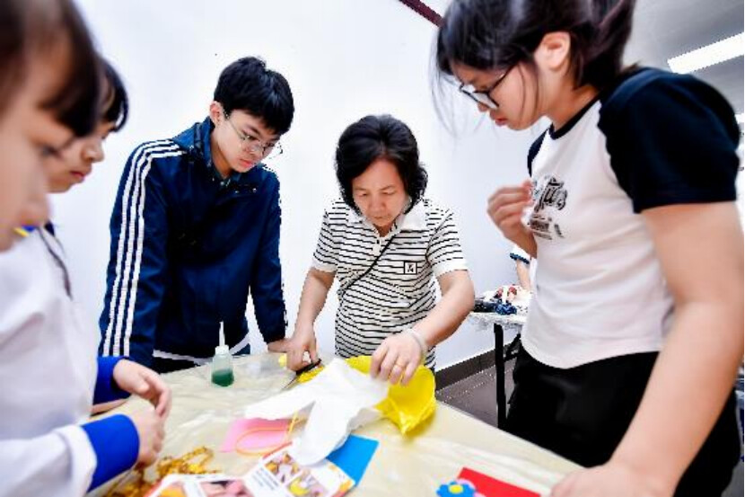 Under the careful guidance of experienced Foshan lantern art inheritors of intangible cultural heritage, young volunteers at the event worked together in teams, with some applying glue to attach colored cloth to the frames, while others ensured smooth adhesion. They meticulously trimmed excess fabric, adorned and reinforced the edges with golden thread, and added various decorative elements according to their preferences, making the lanterns even more vibrant.