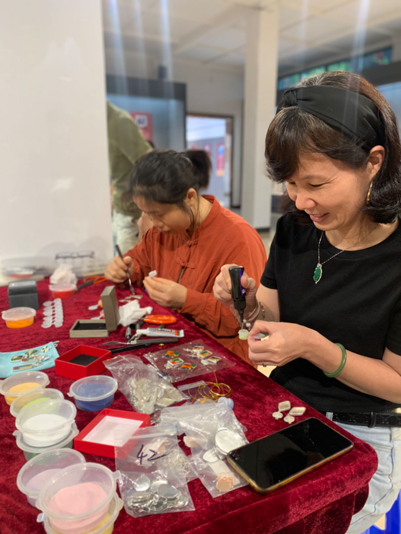 Xiao Lijun, a master of wiry enamel, introduced the craft to GDToday reporter: "Traditional wiry enamel involves complex processes such as wire drawing, soldering, firing, grinding, and gilding to create traditional handicrafts. However, at the event, we can quickly create beautiful and delicate accessories using UV glue commonly used for nail art. Even novices without handicraft experience can make a pair of exquisite wiry enamel earrings for Mother's Day."