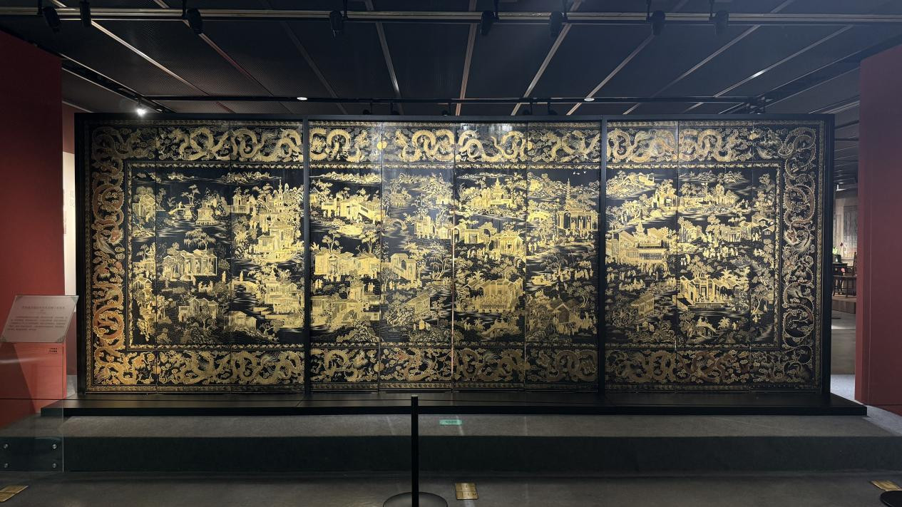The exhibition, themed "Mountains and Waters," features over 100 exquisite artifacts from the Cantonese Opera Art Museum, the Guangzhou Thirteen Hongs Museum, and the Guangzhou Museum. The artifacts, some on display for the first time, include Guangcai porcelain, blue and white porcelain, cloisonné enamels, ivory carvings, lacquerware, embroidery, and export fans, blending historical and cultural value with artistic beauty.