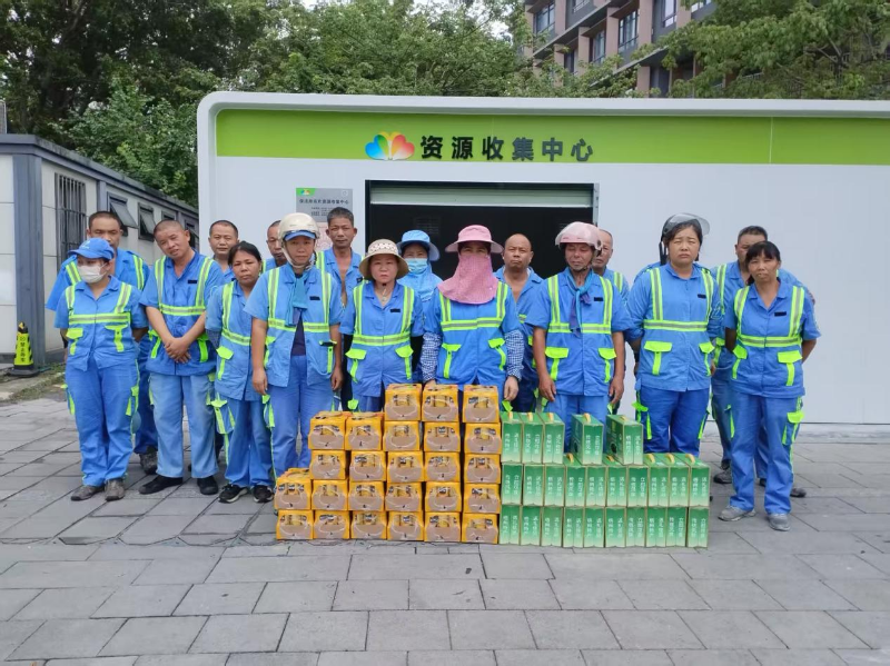 活动现场,工作人员将一箱箱凉茶、椰汁、橙汁和黄老吉等清凉饮料整齐摆放,逐一发放到每位环卫工人手中。拿到清凉饮料的环卫工人脸上露出了朴实的笑容,纷纷表示这份关怀如清风拂面,驱散了高温带来的疲惫,接下来定会以更足的干劲投身工作,为维护城市的整洁美观贡献力量。