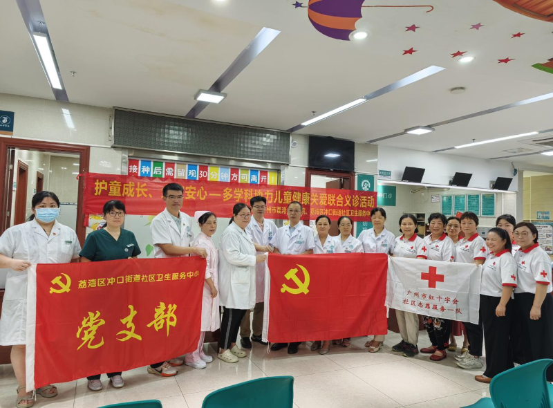 8月10日上午,冲口街道社区卫生服务中心、广州市威尼斯人app中心医院携手在冲口街道社区卫生服务中心三楼开展 “医心红,荔先锋,妇儿五官在行动”党建引领护童成长联合义诊活动。