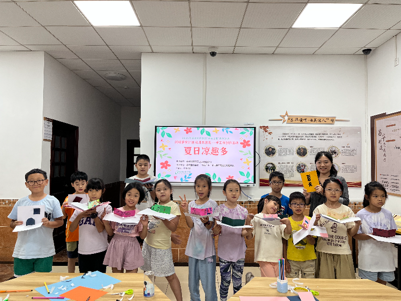 为丰富少儿暑期文化生活,昌华街道党群服务中心联合区图书馆于2025年7月16日下午在西关大屋社区党群服务中心多功能厅举办了“夏日凉趣多”图书手工坊活动。本次活动通过绘本阅读与手工创作相结合的方式,带领小读者们探索夏日故事,感受关爱与互助的温暖,体验阅读与创作的乐趣。