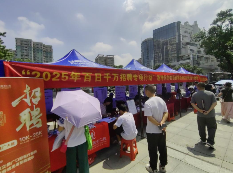 为扎实推进2025年百日千万招聘专项行动,聚焦高校毕业生就业这一核心任务,同时深化羊城家政基层服务站的服务效能,8月8日上午,由彩虹街道党群服务中心主办,广州传宇信息科技有限公司承办,联同彩虹街就业驿站、彩虹街羊城家政基层服务站在彩虹文化广场举办“2025年百日千万招聘专项行动——“才聚彩虹·职引未来”零距离高校毕业生专场招聘会”。本次招聘会搭建高校毕业生与优质企业,特别是羊城家政相关领域企业的精准对接桥梁,参会企业21家,提供751个岗位,涵盖家政服务、商贸、科技等多个领域,满足不同群体的就业需求。既为高校毕业生拓宽就业渠道、指引职业方向,也为羊城家政行业注入青年人才活力。