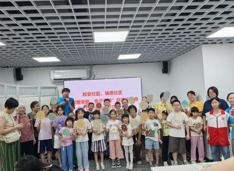 为弘扬中华优秀传统文化,让非物质文化遗产在亲子互动中焕发新生,近日,和安社区居委会、锦绣社区居委会联合社区公卫委与金花街社工站,共同举办了“扇舞宋韵,亲子传锦”非遗宋锦珍珠扇DIY主题亲子活动。活动在金花街道党群服务中心举行,吸引了20余组亲子家庭参与。