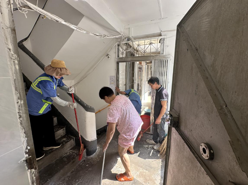 对于近期环市西路124号居民反映,称因有爱心人士投喂流浪猫,导致楼道环境卫生脏乱差,影响居民正常生活且存在公共卫生隐患。行动中,社区工作人员与宇宙鞋城党支部党员志愿者带头,对楼道进行了全面彻底的清洗和消杀,迅速恢复了楼道的干净整洁。令人感动的是,社区的行动感染了辖区居民,大家纷纷主动拿出自家的扫把、水桶,打好清水,热情地加入到清洗楼道的行列中来,从“旁观者”变成了“参与者”,共同践行爱国卫生运动精神,形成了党群齐心、共建美好家园的生动场面。