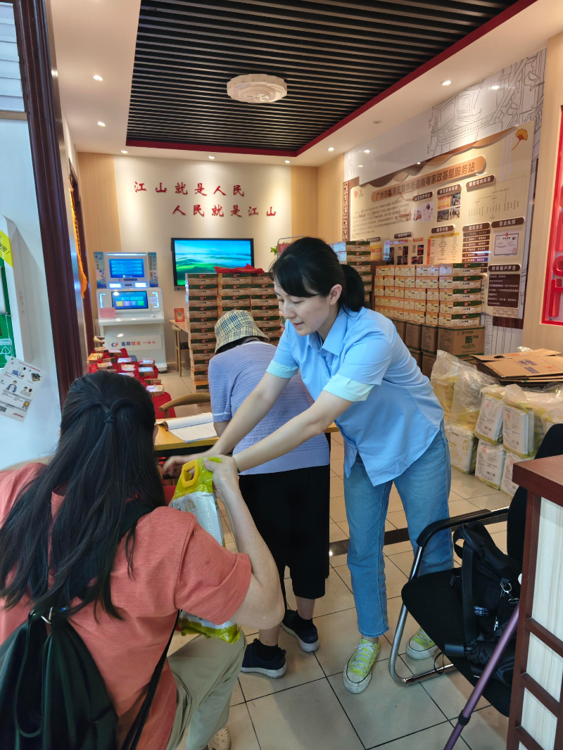 前期,为确保每一位老同志都能及时知晓并顺利领取慰问品,工作人员逐一通过电话或短信联系,详细告知活动时间、地点及领取流程,用一句句亲切的问候、一次次耐心的解答,为慰问活动筑牢了温暖的基础。其后,设置了现场领取专区,活动期间,专区秩序井然,工作人员默契配合,将一份份满载关爱的米、面等慰问品递送到老人手中,并与他们亲切交谈,细心了解他们的身体状况和生活需求。针对年事已高、行动不便的老人,党群服务中心特别安排退管员上门派送,将这份“节日心意”送到家中,确保关怀不漏一人、温暖直抵心坎。