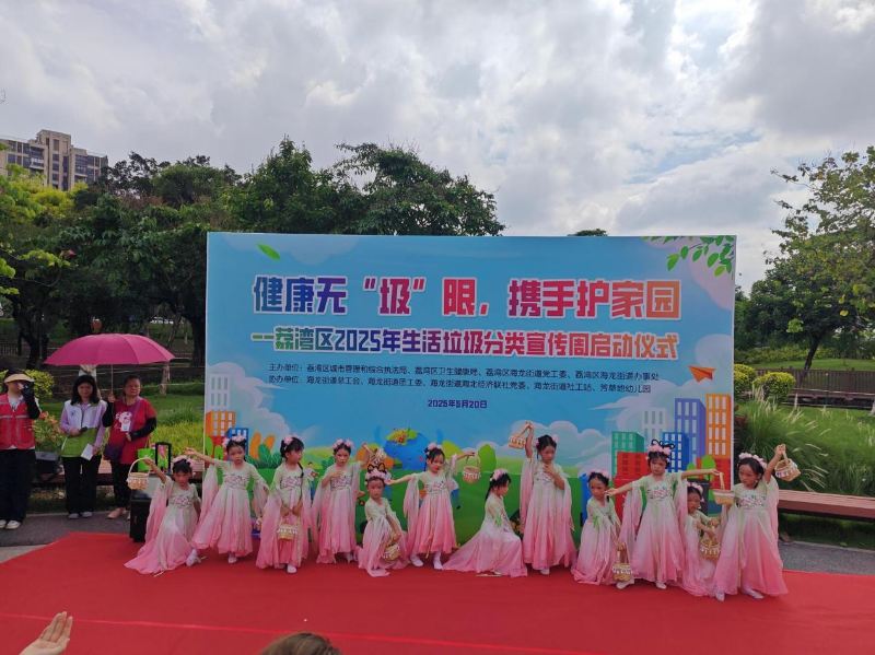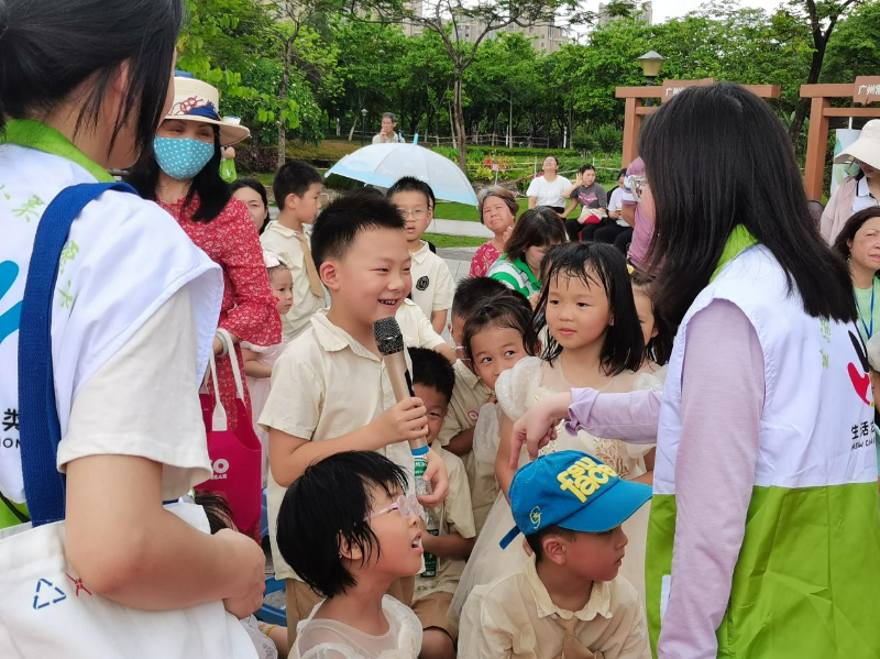 下午3时,浓厚的垃圾分类活动气氛围绕在广佛河畔江北休闲绿地的科普广场上,活动宣讲会在欢快的音乐声中正式开始。生活垃圾分类宣讲员现场宣传:“垃圾分类不仅是城市管理的‘关键小事’,更是关乎居民健康、社区品质的民生大事。希望通过宣传周期间各项活动的宣传引导,让大家能够积极带动身边更多的人参与垃圾分类和爱国卫生、践行垃圾分类,让垃圾分类理念逐步转化为良好的自觉习惯,用实际行动践行垃圾分类和爱国卫生理念,进而引领低碳生活新时尚。”随后,十多名来自芳草地幼儿园的孩子们手持垃圾分类卡通标语,用稚嫩的童声演绎垃圾分类歌舞表演,赢得在场居民和家长们阵阵掌声。