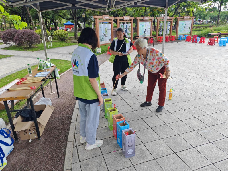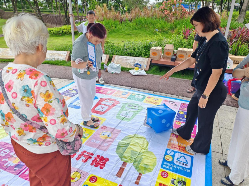 “出发!”随着宣传周活动正式启动,江北健康徒步行动也随之开展,100余名参与者围绕江北休闲绿地环湖绿道开展健步走。现场沿途设置3个主题打卡盖章点,组织居民、志愿者、学生在江北休闲绿地内进行健步走活动,沿途随手捡垃圾向群众宣传垃圾分类、预防登革热等健康知识,倡导低碳出行和环保理念,居民可以在健步过程中学习相关知识。“走一圈下来,汗出了,知识也装满了!”65岁的退休教师陈伯在终点打卡点兑换到环保小礼品后兴奋地说:“这种活动应该多办,我们老年人也能为社区出份力!”