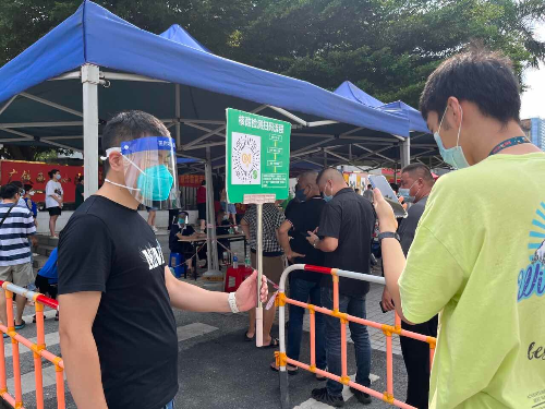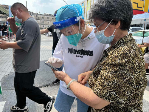 “疫码”当先,让党徽在群众中闪闪发光。为加快核酸采集工作,站前辖内共建单位志愿力量、两新党员志愿者积极参与维持秩序、协助扫码打卡,成为流动的“工具人”,解决群众各类“出码”问题。