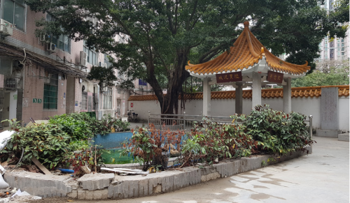 (图:培育提升前,陆贾文化广场花坛破损、杂物众多,缺乏历史文化特色)
