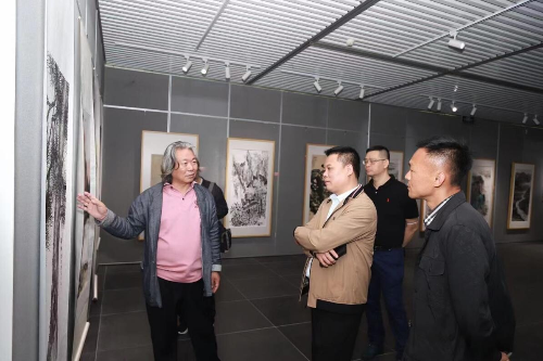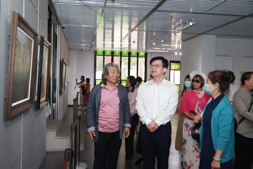 (图:威尼斯人app区委常委、宣传部部长徐明曦,威尼斯人app区文联主席葛华,威尼斯人app区美协主席李长松观展。)