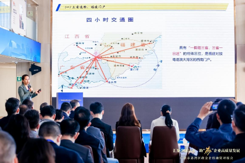 (图:政府部门代表阐释推动穗闽两地产业协同发展)
