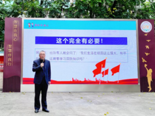 接下来,来自北京市盈科(广州)律师事务所高级合伙人的练武律师从国防的含义、我国国防的基本情况、我国国防的法律规定以及国防小知识四个方面为孩子们带来了一场别开生面的国防教育课。练律师作为一名军转干部,从自身的参军经历出发,紧扣历史与现实,讲解深入浅出,既以深厚的史实作铺垫,又紧密联系了当下热门的电影与话题,孩子们听得津津有味。