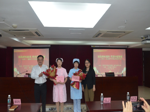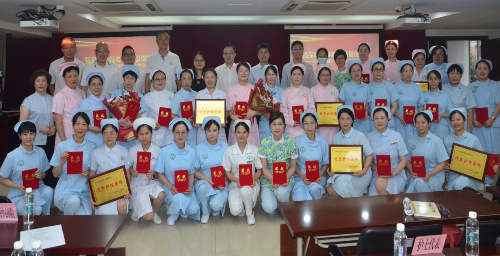 (图:为优秀护士代表颁奖并合影)