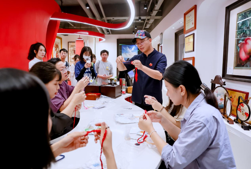 (图:广绣非遗大师王新元带领青年艺术家体验岭南非遗文化)