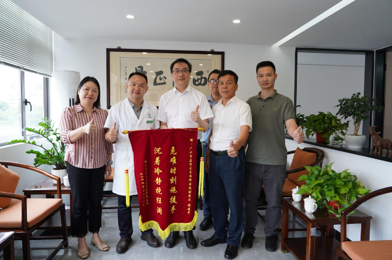 10月16日上午,佛山市建鑫住房租赁有限公司主要负责人带着写有“危难时刻施援手 沉着冷静挽狂澜”的锦旗专程来到区骨伤科医院,向球场救人医生的善举表达感谢。