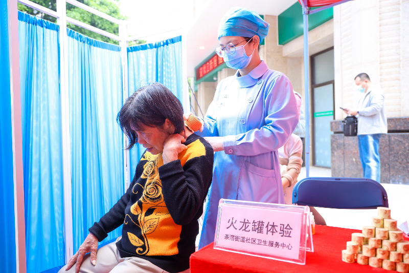 (图:居民体验中医火龙罐治疗)