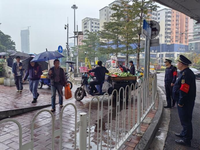 元旦期间,街面人流增多、市容秩序乱象易发,区城管执法局优化执法队员力量部署,加大对城区主次干道、商场市场周边、各大景区等人流量集中区域的巡查。元旦佳节期间,共出动执法队员40余人,对辖内主次干道、农贸市场、主要景区、商业街区等重点位置的市容环境秩序进行巡查督导,发现并整治乱摆卖、占道经营、乱堆放等问题40余宗,对各类违规行为进行劝导,宣传相关法律法规,进一步规范共享单车停放管理,优化道路交通环境。同时,协助区民政局开展流浪乞讨人员救助工作,救助流浪乞讨人员2宗。执法队员步履不停,他们以实际行动诠释城管责任担当,全力做好市容整治各项工作。