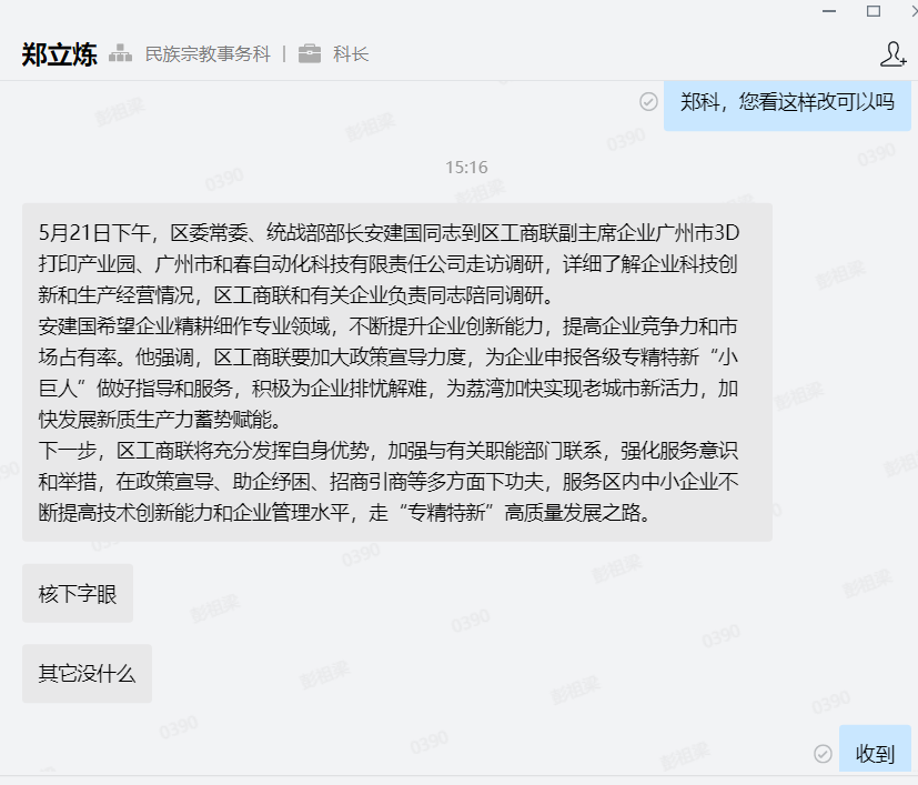 5月21日下午,区委常委、统战部部长安建国同志到区工商联副主席企业广州市3D打印产业园、广州市和春自动化科技有限责任公司走访调研,详细了解企业科技创新和生产经营情况,区工商联和有关企业负责同志陪同调研。