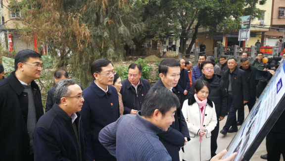 (图:刘悦伦主席听取视察河涌治理情况汇报)