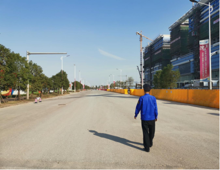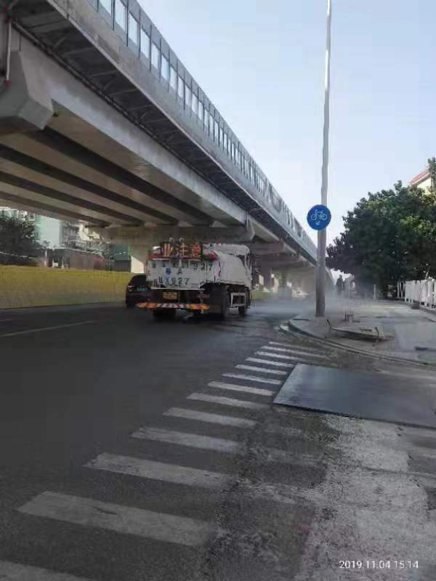 三、医药港工地装修材料路边无序摆放,周边道路如东沙大道等道路积尘较多。