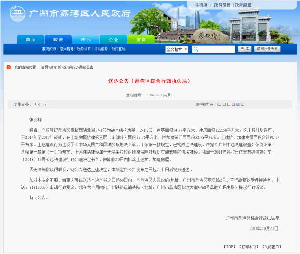 二、问题交办单第11号反映的威尼斯人app区芳村白鹤洞鹤翔里19号902室楼顶违法建(构)筑物,在属地街道的牵头下,已实施强制拆除,目前该址违法建(构)筑物已拆除完毕。