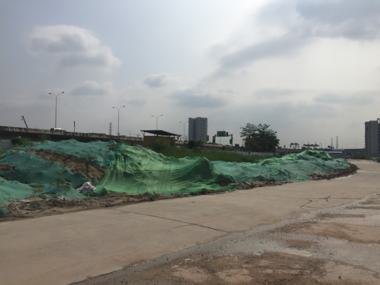 立白集团综合科技园工地裸土已覆盖绿网 |