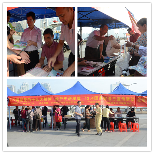 今年12月4日是第四个国家宪法日,是全民的宪法“教育日、普及日、深化日”。当天上午,花地街综治科联合总工会、人大、司法所、派出所、社区法律顾问等机构,开展以“学习贯彻党的十九大精神,维护宪法权威”为主题的“12.4”国家宪法日宣传活动。本次活动共吸引群众约200多人,活动现场设置了法律服务区,由司法所、社区法律顾问等工作人员向居民群众派发《法治》、《法律小知识》、《人民调解法》、《劳动合同法》、《社会治安处罚法》、《扫黑除恶》、《禁毒》、《五类车整治》、《反恐》、《反邪教》等法治宣传小册子约200多份,派发了纪念品200多份,进一步宣传国家宪法等法律知识,在全社会努力形成崇尚宪法、遵守宪法、维护宪法权威的浓厚氛围,维护法治环境,严打黑恶势力。