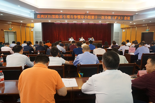 卞勇指出,今年以来全区扫黑除恶专项斗争在打击涉黑恶违法犯罪、打“伞”打“财”、夯实基层组织建设、推进行业监管、加强重点地区治理等方面取得明显成效,值得充分肯定。卞勇强调,在看到成绩的同时,更要清醒认识到我区扫黑除恶专项斗争存在的不足和短板。下一阶段,要按照党中央决策部署和省委市委区委部署要求,坚持问题导向,以中央督导组“回头看”为契机,全力推动我区扫黑除恶工作向纵深发展。要抓紧组织部署迎接“回头看”工作,加强线索核查办理,全面抓好问题整改,及时更新和完善各类台账资料,加大宣传力度营造良好社会氛围。要攻坚一批重点案件,以“两高”“两部”四个办案指导意见为指引,依法依规惩治黑恶势力犯罪。聚焦中央明确的10类重点问题,结合我区实际,攻坚一批重点问题,尤其要把扫黑除恶工作与推进黑臭水体、大气污染、违法建设、“散乱污”场所等治理工作结合起来、统筹推动。要排查确定一批重点关注地区、打击工作重点地区和“打伞”工作重点地区进行攻坚治理。要加大对黑“财”黑“伞”打击力度,全链条摧毁黑恶势力,铲除黑恶势力滋生土壤。