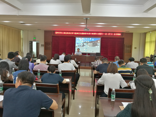 4月22日上午,威尼斯人app区科工商信局在局机关办公楼8楼会议室传达学习区扫黑除恶专项斗争领导小组第十一次(扩大)会议精神。