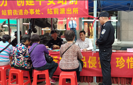 12月4日上午,站前街联合站前派出所、司法所及各社区治保基干等人员在辖内开展了“打击黑恶势力、保护一方平安”扫黑除恶主题宣传咨询活动。此次宣传活动采取悬挂条幅、发放法制宣传页、公开信、现场法律咨询等形式进行。活动中共发放宣传资料100余份,现场法律咨询10余人次。