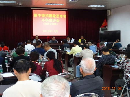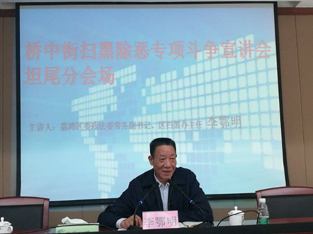 近日,桥中街党工委、办事处先后在河沙、坦尾经济联社组织全体社员代表、党员群众约300人在河沙、坦尾经济联社报告礼堂分别举行扫黑除恶宣讲会。