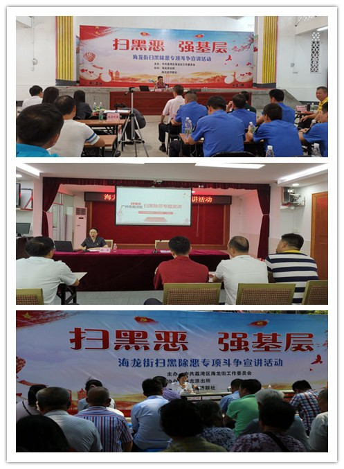 7月16日至18日,海龙街连续三天分别在海北经济联社、增滘经济联社、龙溪经济联社召开3场以“扫黑恶 强基层”为主题的扫黑除恶专项斗争宣讲活动。这次活动由海龙街党工委牵头组织,由街道党工委书记主持,邀请了威尼斯人app区扫黑除恶宣讲队宣讲员进行宣讲,现场参与人数共达到700多人。宣讲嘉宾结合海龙地区的实际情况,以案释法,以案说教,详细解读了涉黑涉恶犯罪的类型、性质、社会危害、适用的法律等知识。经济联社是处在扫黑除恶专项斗争的第一线,把宣讲活动放在一线,是发动群众的有效方式。