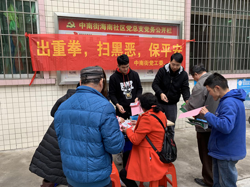2月26日下午,中南街扫黑除恶办联合海南社区居委会在赤岗联谊会开展扫黑除恶宣传活动。