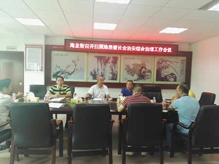 2018年7月19日下午,海龙街组织召开街道扫黑除恶暨社会治安综合治理工作会议。街道领导班子成员、党政办、综治中心、纪检监察室、海龙派出所所长、各经济联社党总支书记及治保主任等参加了会议。