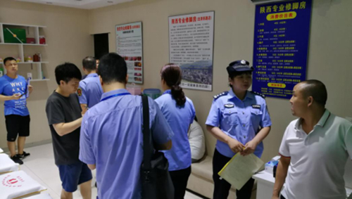 图:检查修脚店,出具整改意见书