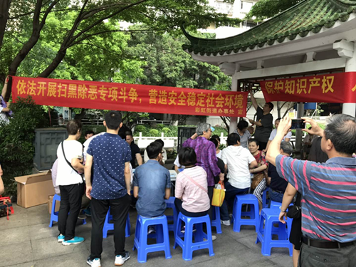 4月26日,彩虹街综治办联合区司法局在彩虹街彩虹广场开展了以“扫黑除恶、反邪教、禁毒、反恐”为主题的大型法制宣传活动。在活动现场,工作人员设立咨询台,为广大群众答疑解惑,并向群众发放了扫黑除恶、禁毒、反邪教、反恐等方面的宣传资料,提高群众对扫黑除恶、反邪教、禁毒、反恐等方面内容的知晓率,增强了群众的法律意识和法治观念。活动现场还展出了扫黑除恶、国家安全、禁毒、反邪教等各类宣传展板,让群众更直观的感受到黑恶势力、毒品、邪教等给社会带来的危害,认识了扫黑除恶专项斗争、禁毒、反对邪教的必要性。 此次宣传活动,共发放扫黑除恶、反恐、禁毒、反邪教等宣传资料500余份,展出各类展板6块,取得了良好的社会宣传效果,受到了广大群众的一致好评。