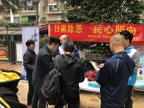 1月19日上午,逢源街富力东社区开展“扫黑除恶、民心所向”扫黑除恶专项斗争宣传活动。社区民警和社区基干在T区中心花园摆摊设置宣传点,向居民群众宣传扫黑除恶的重要性及必要性,并详细讲解关于违法犯罪线索举报方式及奖励。活动共吸引50余位群众咨询,发放100余份宣传品。